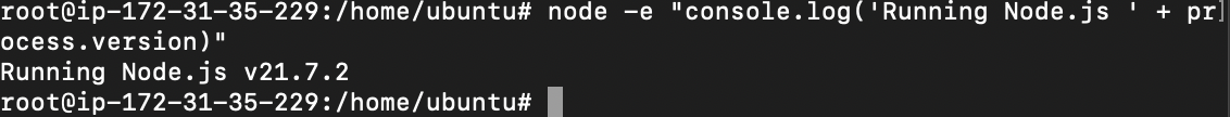 $ node -e "console.log('Running Node.js ' + process.version)"