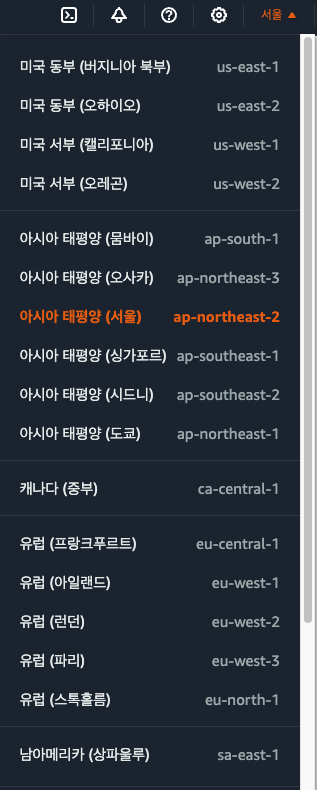 국가를 아시아 태평양(서울)로 먼저 설정해준다. 설정한 국가와 사용자들이 주로 접속한 국가가 서로 멀 경우 느려질 수 있다고 하니, 웬만하면 현재 거주 중인 국가로 설정하도록 하자.