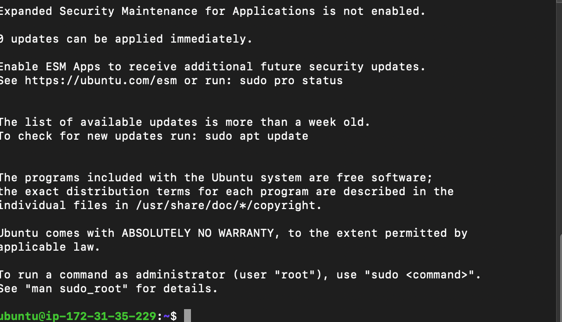 이제 ubuntu 환경에서 node, git, yarn을 설치해야 한다.