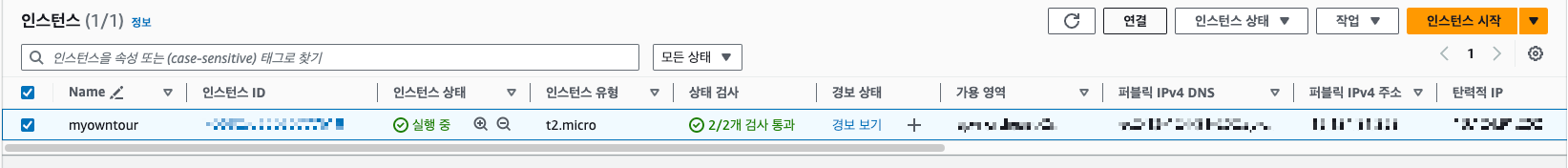 모든 설정 완료 후 인스턴스 시작 버튼을 클릭하면 인스턴스가 잘 생성된다!
