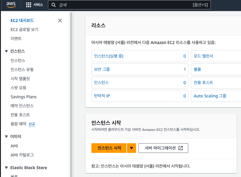 이제 인스턴스를 생성해서 AWS를 이용한 프로젝트 배포를 진행해보자.